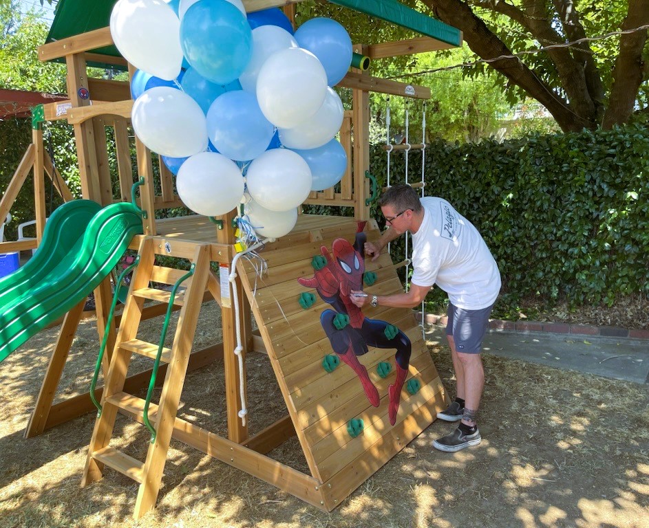 To make this gift even more special, we incorporated his favorite superhero, Spider-Man, into the design, adding a personal touch that truly captured his imagination. The joy and surprise on Thomas’s face, as well as that of his family and neighbors, were priceless! This initiative not only provided Thomas with a safe and joyful space to explore and dream big but also turned his backyard into a haven of happiness. Ultimately, this build has created beautiful memories for Thomas and his family, offering them a bright spot during a challenging chapter of their lives.