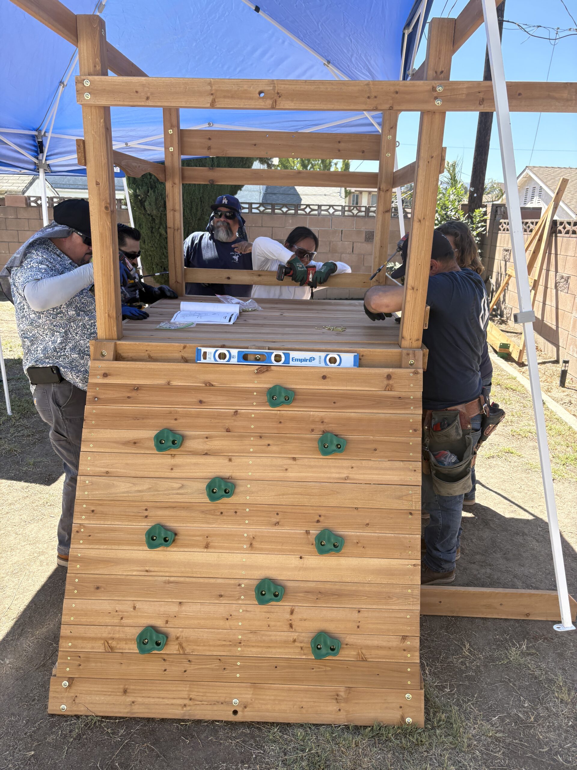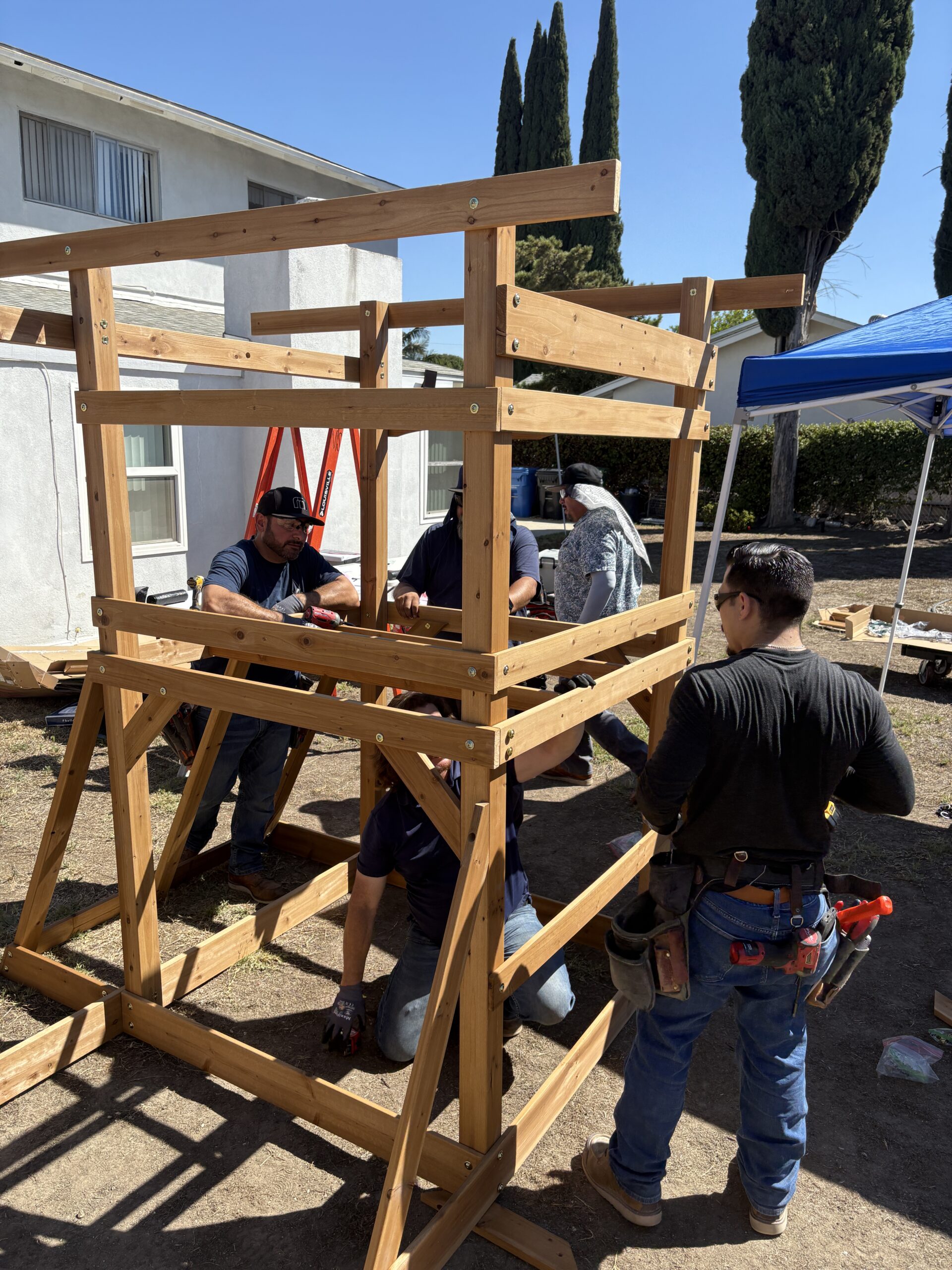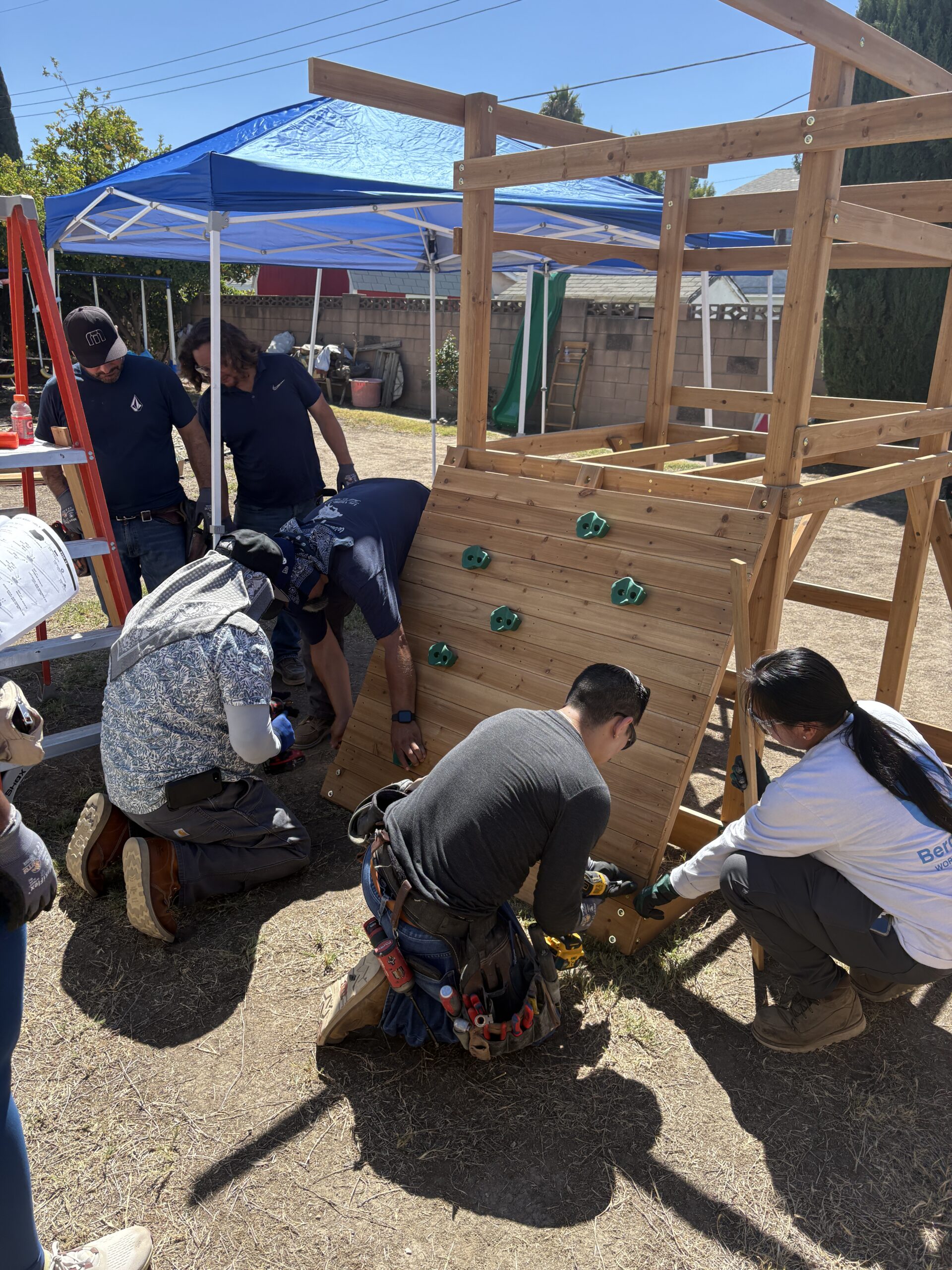 On Build Day, eight dedicated Bergelectric volunteers gathered bright and early, fueled by Ryan’s spirit. After being warmly welcomed by his family, we split into teams and started assembling every piece of the playset with care. As we completed each subsection, we joined forces to raise the fort, working together to bring the vision to life.